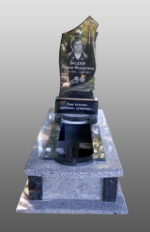 The figurative monument made of high-quality polished granite in restrained, elegant black and grey shades is a symbol of eternal memory and honour. The luxurious carved base harmoniously combines aesthetics and functionality: there is a place for planting fresh flowers or placing vases, as well as space for a memorial inscription. It can also be used to place memorial lamps or candles, creating an atmosphere of warmth and tranquillity.