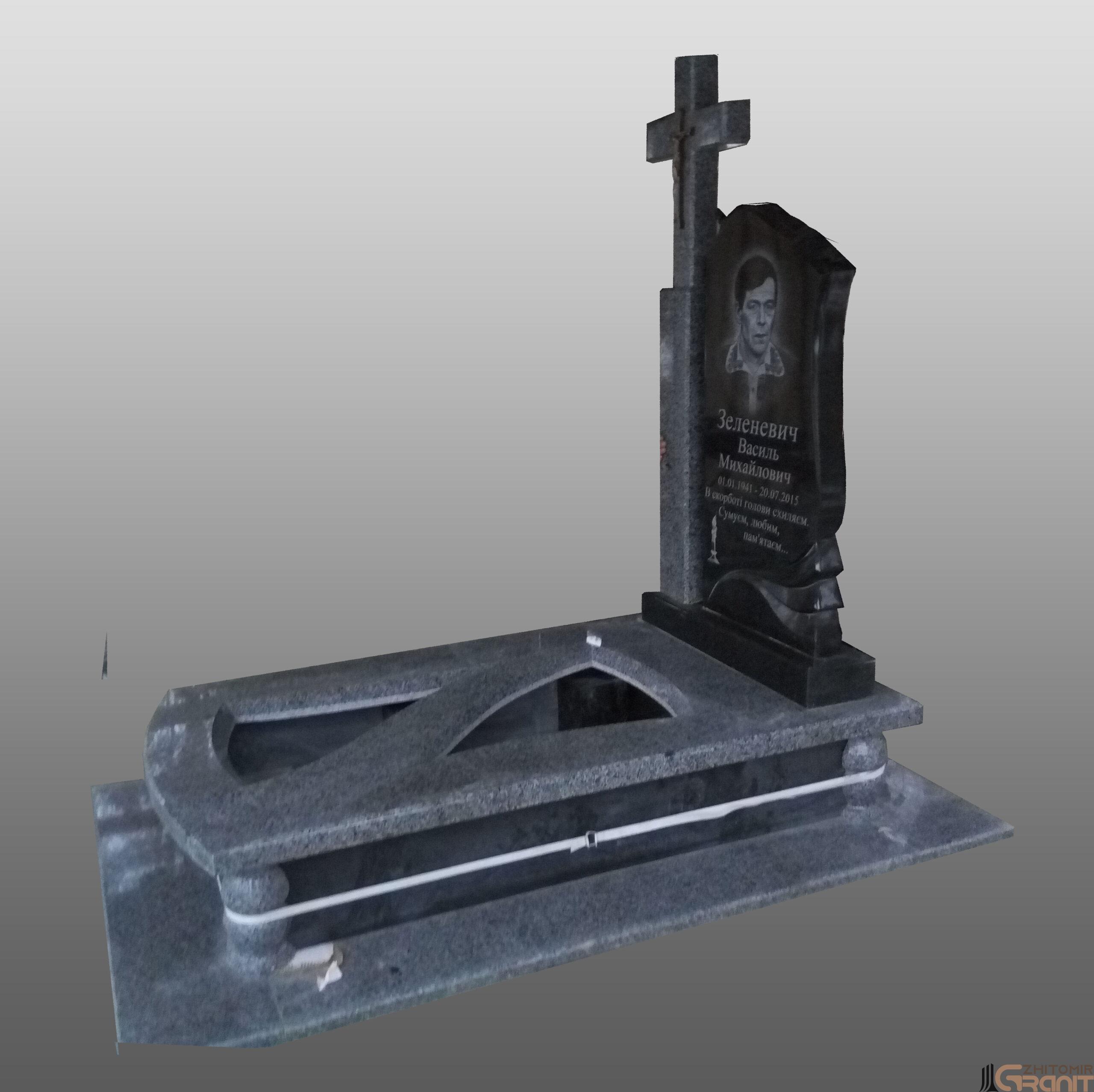 A double monument in the shape of an angel under a cross. The left and right wings of the angel serve as tombstones. There is a cross above the exposition and an icon at the base of the cross (the angel's head).